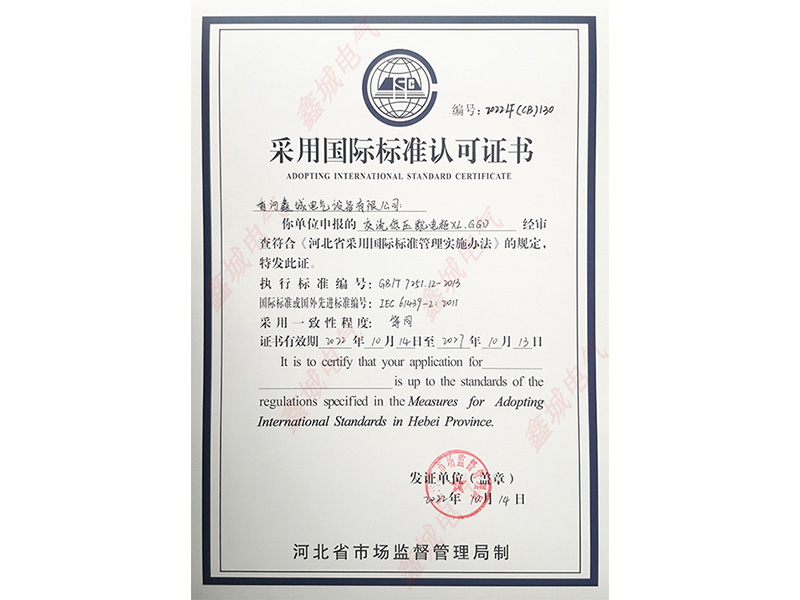 XL.GGD 采用國(guó)際標(biāo)準(zhǔn)認(rèn)可證書
