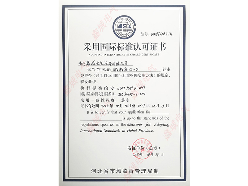 XC-X 采用國際標(biāo)準(zhǔn)產(chǎn)品標(biāo)志證書